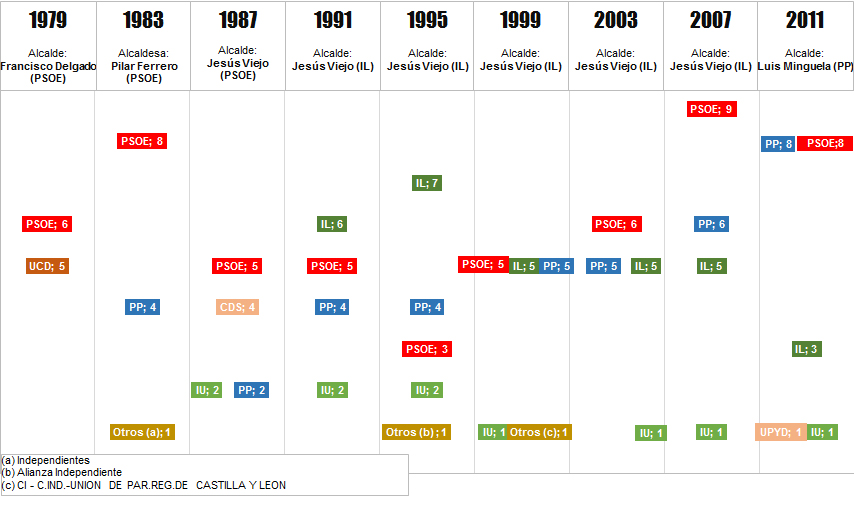Desde 1978 han gobernado en Laguna tres partidos distintos: PSOE, IL y PP. En el caso de estos dos últimos, siempre en coalición.
