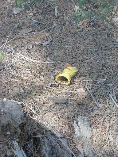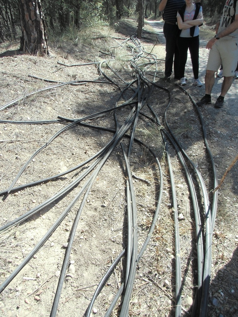 Queremos hacer en este punto una denuncia pública sobre la situación en la que muchos momentos se encuentra el pinar, con suciedad y restos que deja el hombre, repartidos a lo largo y ancho del mismo. Estos restos de plástico aislante de la foto siguiente, parecen cables de la obra del AVE próxima a este pinar, del que han sustraído el cobre y han dejado aquí los sobrantes. Además encontramos otros restos, que pensamos, podrían eliminarse con alguna batida que se realice por parte del ayuntamiento con equipos de limpieza, como mantenimiento a este incomparable entorno.