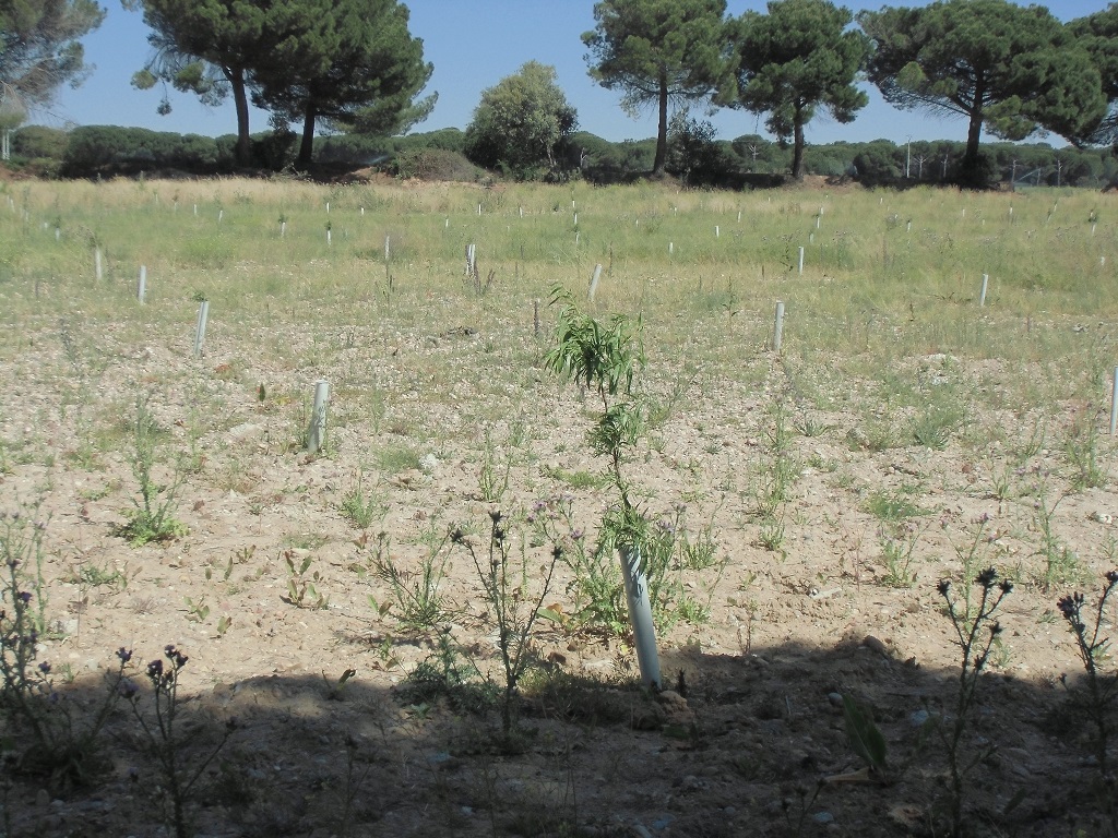 En los laterales de este camino podemos ver replantaciones de diferentes árboles, lo cual se ha realizado por la obligación que tienen las empresas que gestionan las graveras al retirarse, de rellenarlas y poner vegetación con unas ciertas características, para realizar una mejora ambiental. Éstas como vemos, cumplen hasta el momento de tener un mantenimiento con los futuros árboles, dejándoles secar y perecer.
