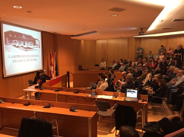Bajo este lema se celebró en el salón de Plenos del Ayuntamiento de Laguna de Duero, el pasado 18 de abril de 2017 una conferencia, impartida por la Profesora Dª Orosia Castán, a la que acudió un numerosísimo grupo de personas que abarrotaron el mencionado salón, cubriendo el aforo de asientos, ocupando con sillas auxiliares los laterales y pasillos y escuchando de pie desde el hall de entrada. Tal fue la expectación despertada por la convocatoria, de la cual Ateneo Socio Cultural de Laguna de Duero se hace eco  y se adhiere al objetivo de ese Grupo asociativo que busca dar respuesta a preguntas que muchos vecinos de Laguna aún esperan conocer y reparar, en la medida de lo posible, el daño, ya solo moral, que el levantamiento militar de 1936 ocasionó en sus familias y paliar la falta de respuesta a dichas preguntas por parte de las distintas administraciones.