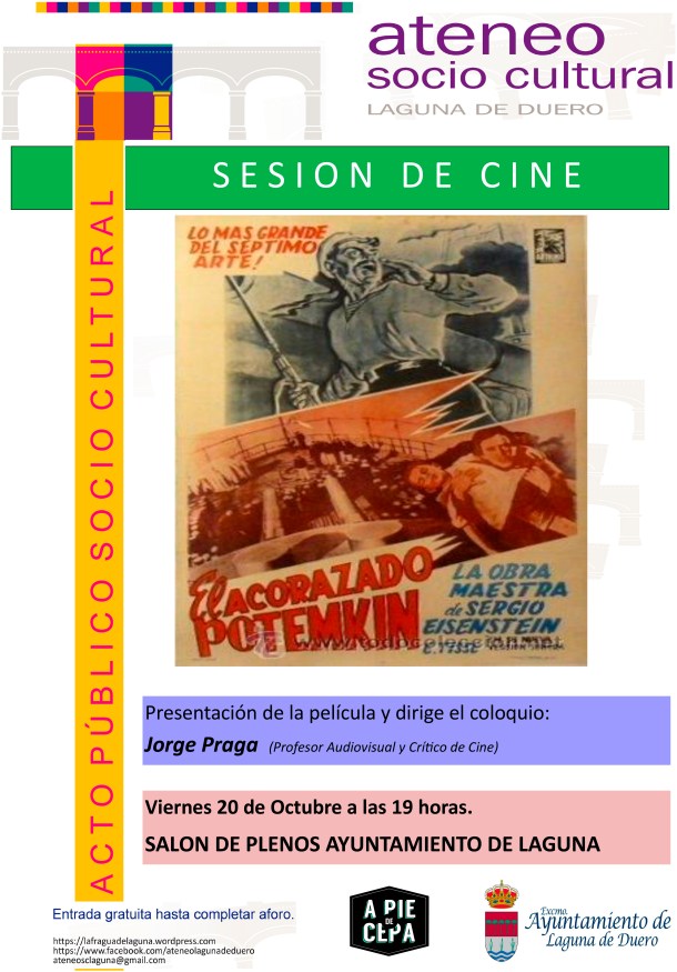 Con posterioridad, el 20 de octubre de 2017 y dentro del mismo contexto del Centenario, se proyectó en el salón de Plenos Municipal el film “El Acorazado Potenkim”, película de un joven Einsestein y que relata los acontecimientos acaecidos en el entorno de dicho buque y que fue comentada por el Profesor Praga, aquellos acontecimientos se pueden considerar como un anticipo de lo que en 1917 acaecería en La Rusia Zarista, la Revolución de Octubre, que cambio, literalmente, el mundo.