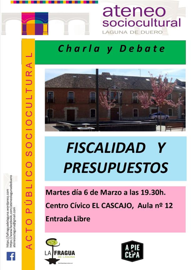 En esta ocasión, el día 6 de marzo de 2018, el debate versará sobre «Fiscalidad y presupuestos» con el objetivo de discutir sobre la propuesta de presupuestos que ha lanzado el equipo de gobierno del Ayuntamiento de Laguna de Duero, y que opiniones existen al respecto de las personas que participen en dicho debate.