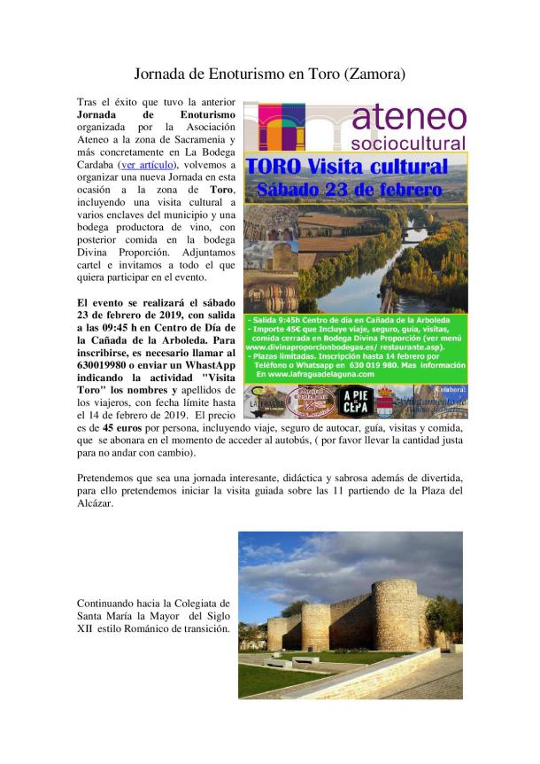Jornada de Enoturismo en Toro (Zamora) Publicado el 1 febrero, 2019 por lafraguadelaguna 1 comentario Compártelo: Haz clic para compartir en X (Se abre en una ventana nueva) X Haz clic para compartir en Facebook (Se abre en una ventana nueva) Facebook Me gusta Cargando...