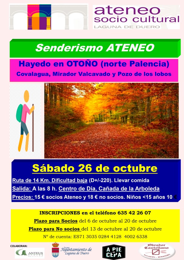 Llegó el otoño, una estación privilegiada para caminar y recrearnos en esos colores tan especiales, rojizos, ocres….. En esta ocasión, Ateneo ha preparado una ruta por el norte de Palencia, más en concreto por Covalagua y alrededores para el sábado 26 de octubre.