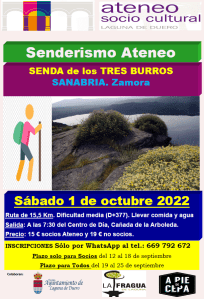 Cuarta ruta de senderismo en 2022 organizada por Ateneo Sociocultural. En esta ocasión visitaremos un mirador excepcional como es el que se situa en la Ruta de los Tres Burros, en Cabrera, zona del Parque Natural del Lago de Sanabria, en Zamora.