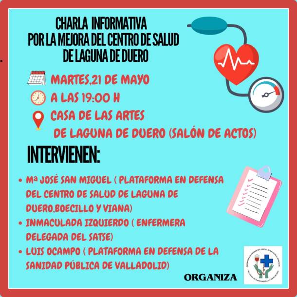 Charla informativa por la mejora del centro de salud de Laguna de Duero, el 21 de mayo de 2024 Publicado el 15 mayo, 2024 por lafraguadelaguna Deja un comentario Compártelo: Compartir en X (Se abre en una ventana nueva) X Comparte en Facebook (Se abre en una ventana nueva) Facebook Me gusta Cargando...