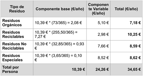 1. Componente variable: Basado en la cantidad de residuos sólidos urbanos generados, medidos en kilogramos por día mediante el sistema de pesaje implementado por el Ayuntamiento.
