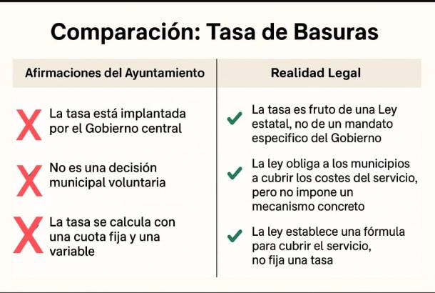 El artículo del Ayuntamiento afirma que la tasa de basuras es “una imposición del Gobierno central” y que no tiene otra alternativa, que presenta un cálculo “que la media es 121 €” y que “no es momento de recurrir”.